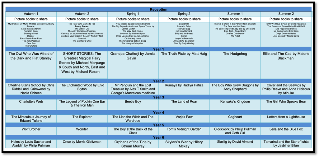 Every child has access to a phonetically decodable book which is suitable for their reading attainment as well as a reading for pleasure book. These books are routinely monitored by the class teacher.